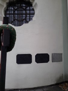 Umístění: Slavkov u Brna, Špitálská, hřbitov, na zdi kaple sv. Jana KřtiteleUNSEREM INNIGGELIEBTEN