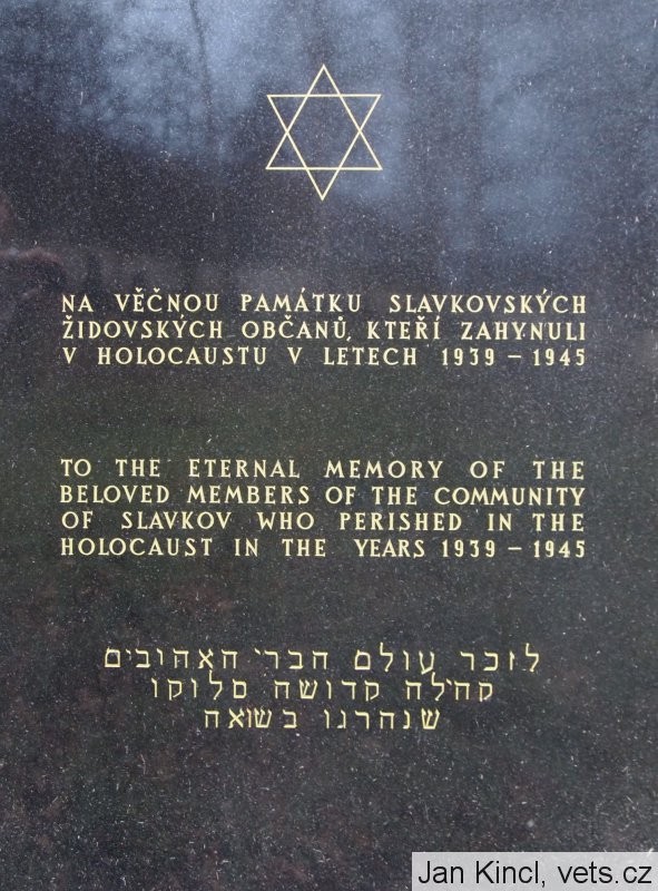 Umístění: Slavkov u Brna, Koláčkovo náměstí, na židovské synagoze, u vchoduPAMÁTCE