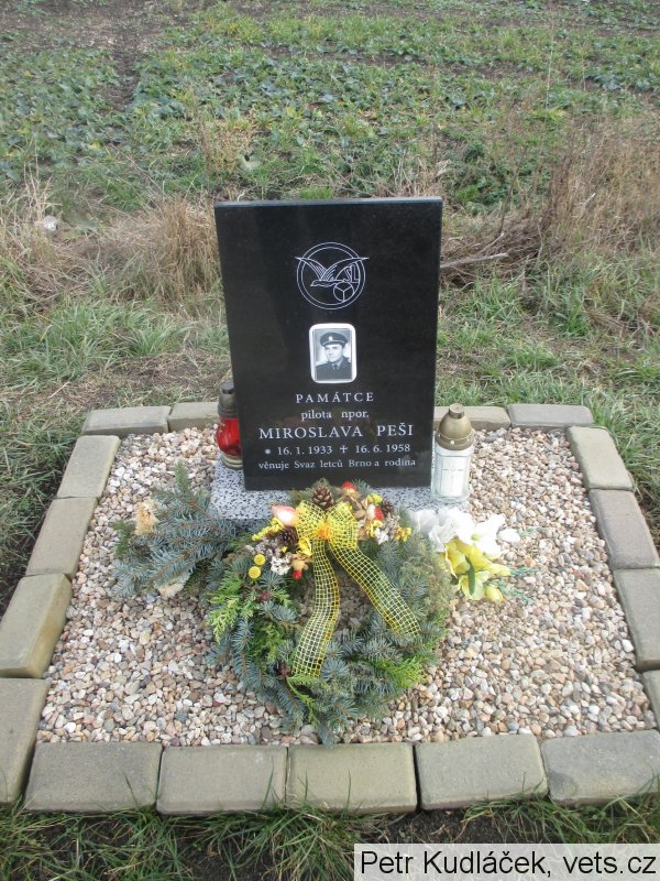 Pilot Miroslav Peša zahynul 16.6.1958 při letecké nehodě u Slavkova. Pomník byl odhalen v roce 2016.