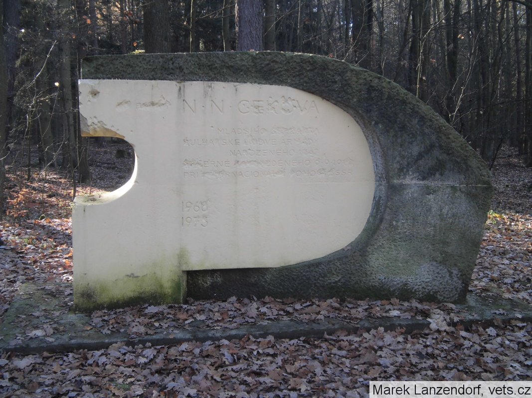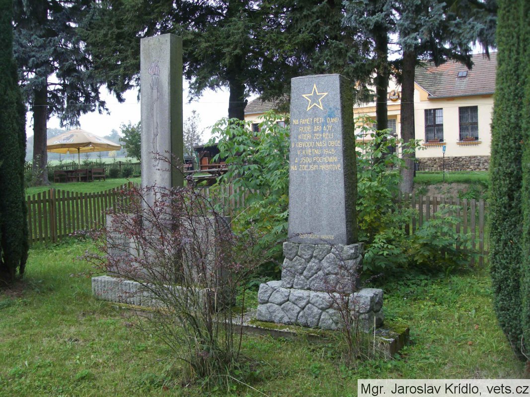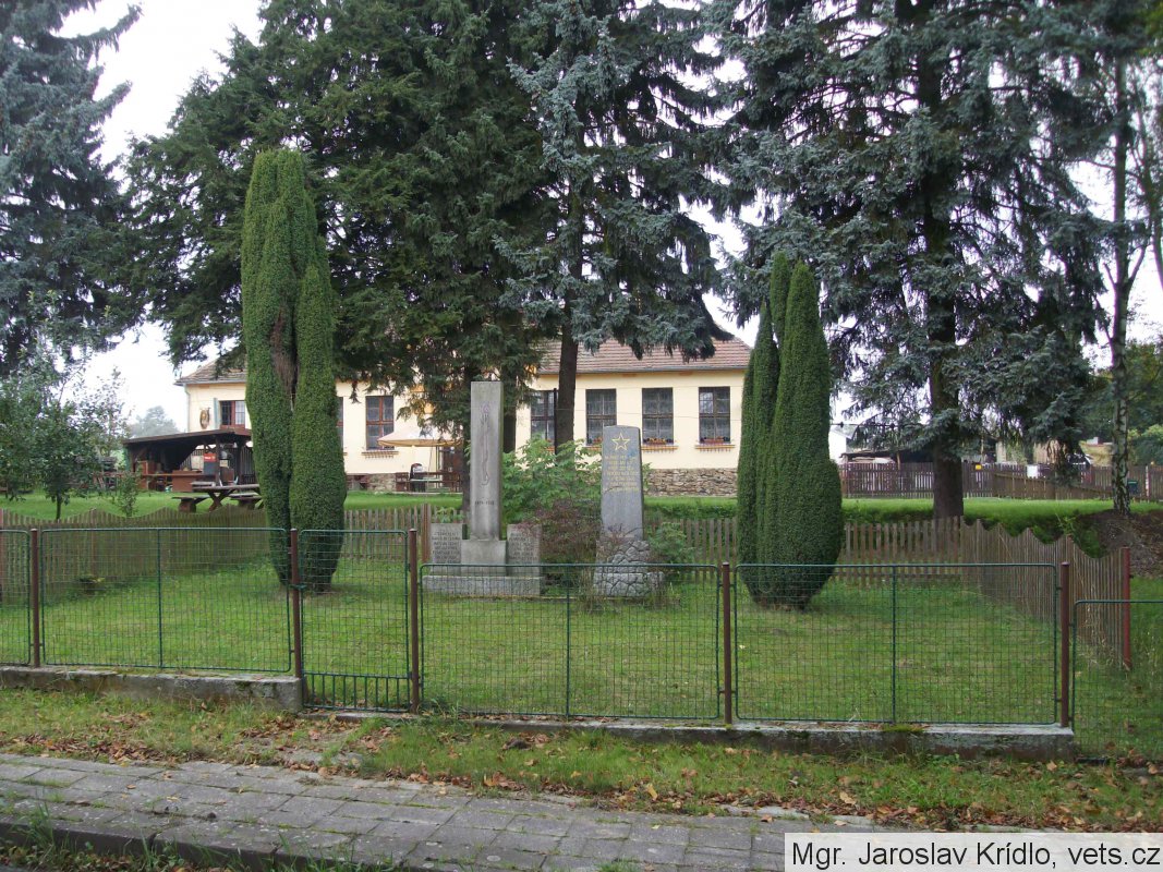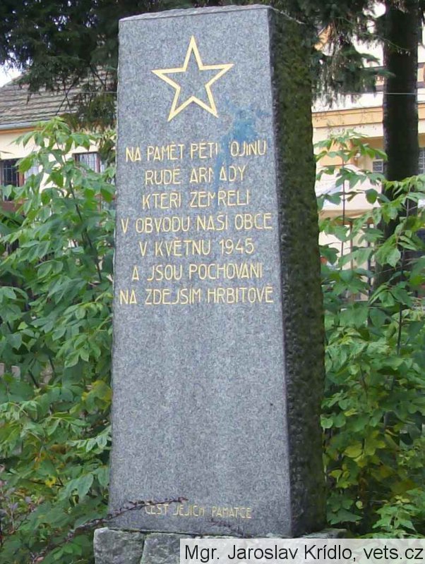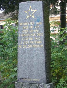 Pomník pěti zemřelých vojáků Rudé armády se nachází v zahradě bývalé školy.