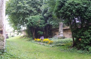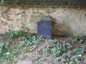Bezejmenný hrob zemřelých s nápisem uchyceným na hřbitovní zdi je umístěn za kostelem sv. Máři Magdalény.