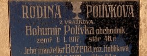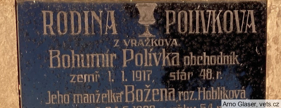 Polívka Bohumír: *1868 Ctiněves, okr. Roudnice n/L (dnes okr. Litoměřice). Ženatý, obchodník a řezník. LstInft., IR. Nr. 42, ErsResKomp. +1.1.1917 Vražkov, č. p. 78, plicní krvácení. 4.1.1917 pohřben na zdejším hřbitově.