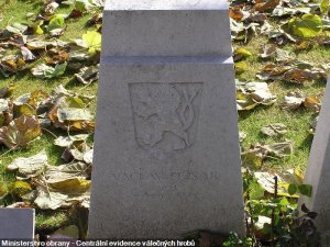 Centrální evidence válečných hrobů: je evidován, dle seznamu