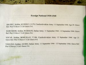 Je to napsané i v knize v kapli , že na hřbitově jsou vojáci Commonwealthu - V. Británie, Austrálie, Canady, Indie, N. Zélandu a Jižní Afriky a 4 jsou z NonCommonwealthu – tedy 2 Češi a 2 Italové.
