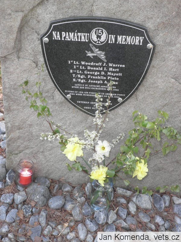 Pět členů posádky, kteří nestačili během letu vyskočit, bylo zatčeno gestapem. Při převozu, směrem do Kalice, byli donuceni vystoupit z auta a byli zastřeleni, okradeni a ve spodním prádle zahrabáni do sněhu vedle silnice.