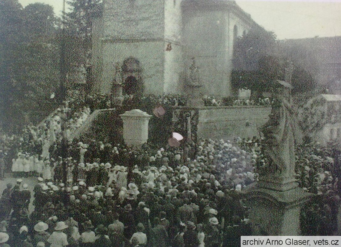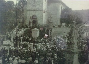 Na dalším historickém snímku je slavnostní odhalení pomníku.