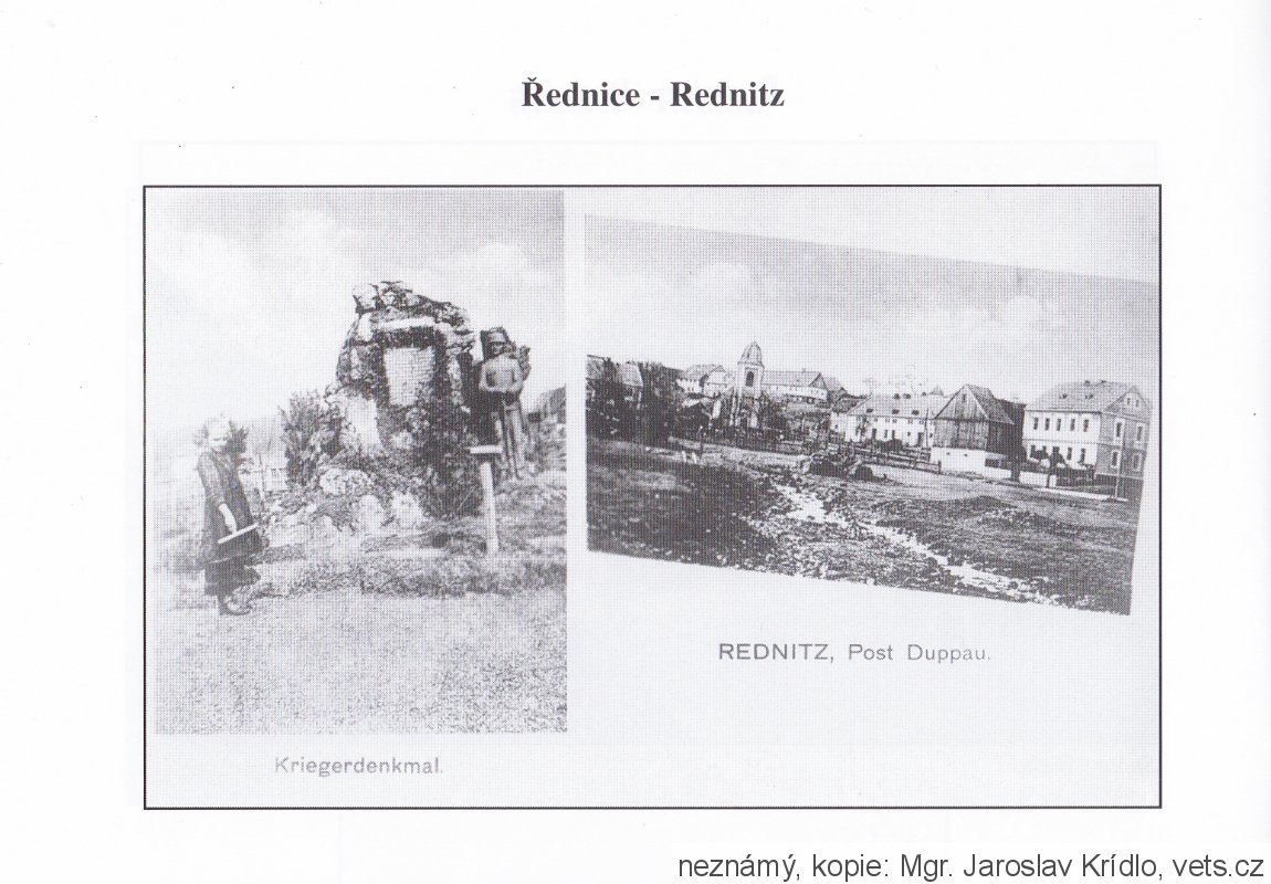Řednice je jednou ze zaniklých vesnic ve vojenském újezdu Hradiště, která ležela v Doupovských horách jedenáct kilometrů jihozápadně od Radonic a která uctívala válečným Pomníkem památku Účastníkům a Obětem v 1. světové válce. Vojenský újezd Hradiště se nachází v okrese Karlovy Vary v Karlovarském kraji mezi městy Karlovy Vary, Bochov, Kadaň a Podbořany v Doupovských horách. Vojenský výcvikový prostor Hradiště byl zřízen rozhodnutím předsednictva vlády ČSR ze dne 4.3.1953 se zpětnou platností k 1.2.1953 a byla zbořena řada obcí a zničeno mnoho památek.