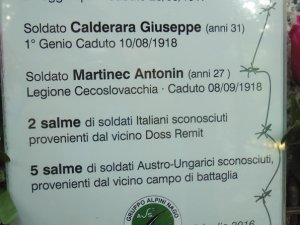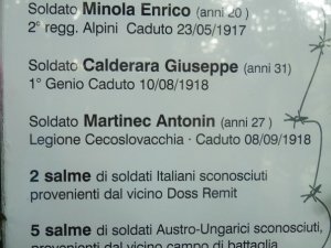 Na pamětní tabuli je uvedeno i jméno jednoho z padlých ČS legionářů – vojín Antonín Martinec, věk 27 let, Československá legie, padl 8. 9. 1918. Ostatky tohoto vojáka jsou v současné době zřejmě uloženy na centrálním vojenském pohřebišti Castel Dante u Rovereta, kam byly uloženy ostatky 151 československých legionářů, padlých v boji.