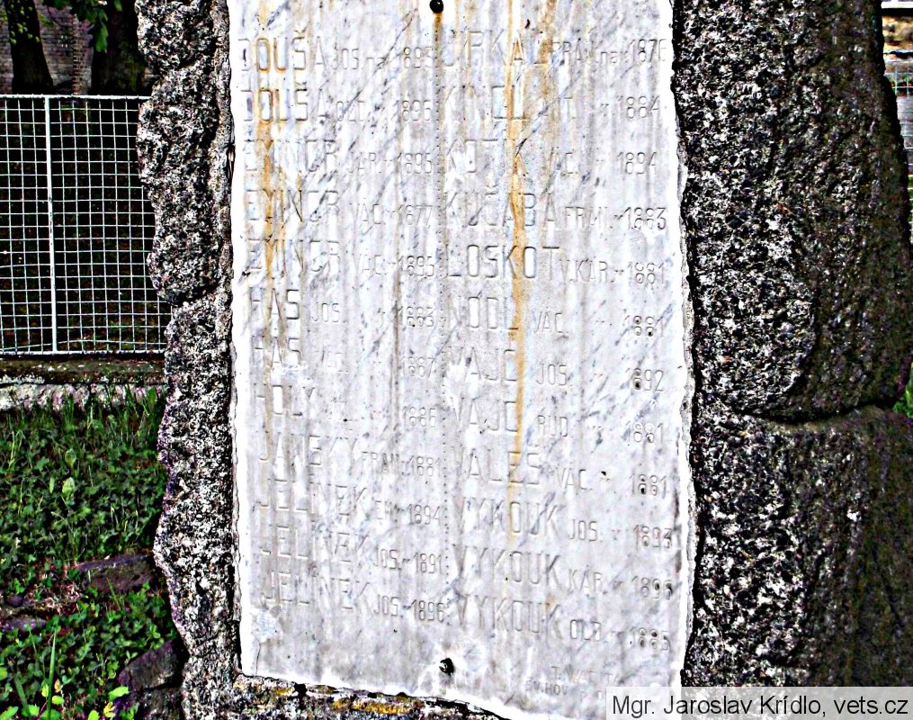 Na pomníku Obětem 1. světové války psán Vykouk.