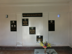 po roce 1945 odstraněny veškeré nápisy, kamenné desky, které zakývaly vstup do hrobky zasypány hlínou.
