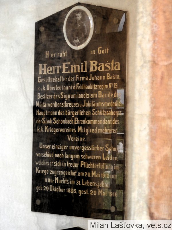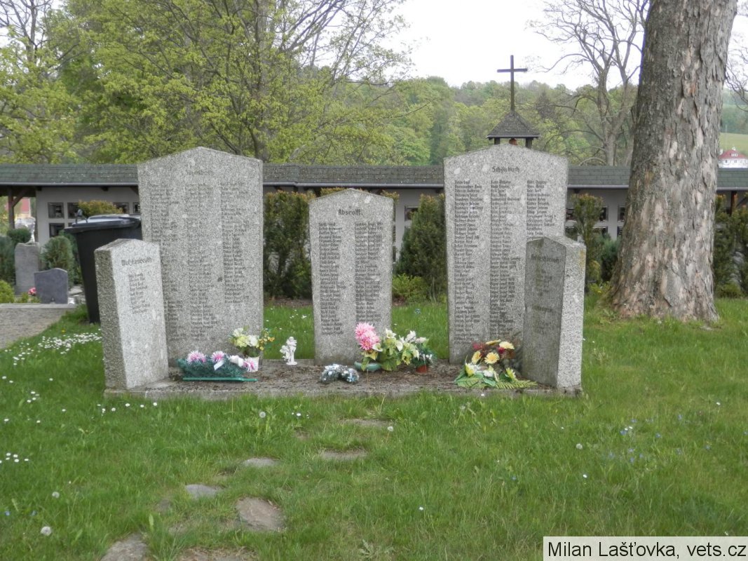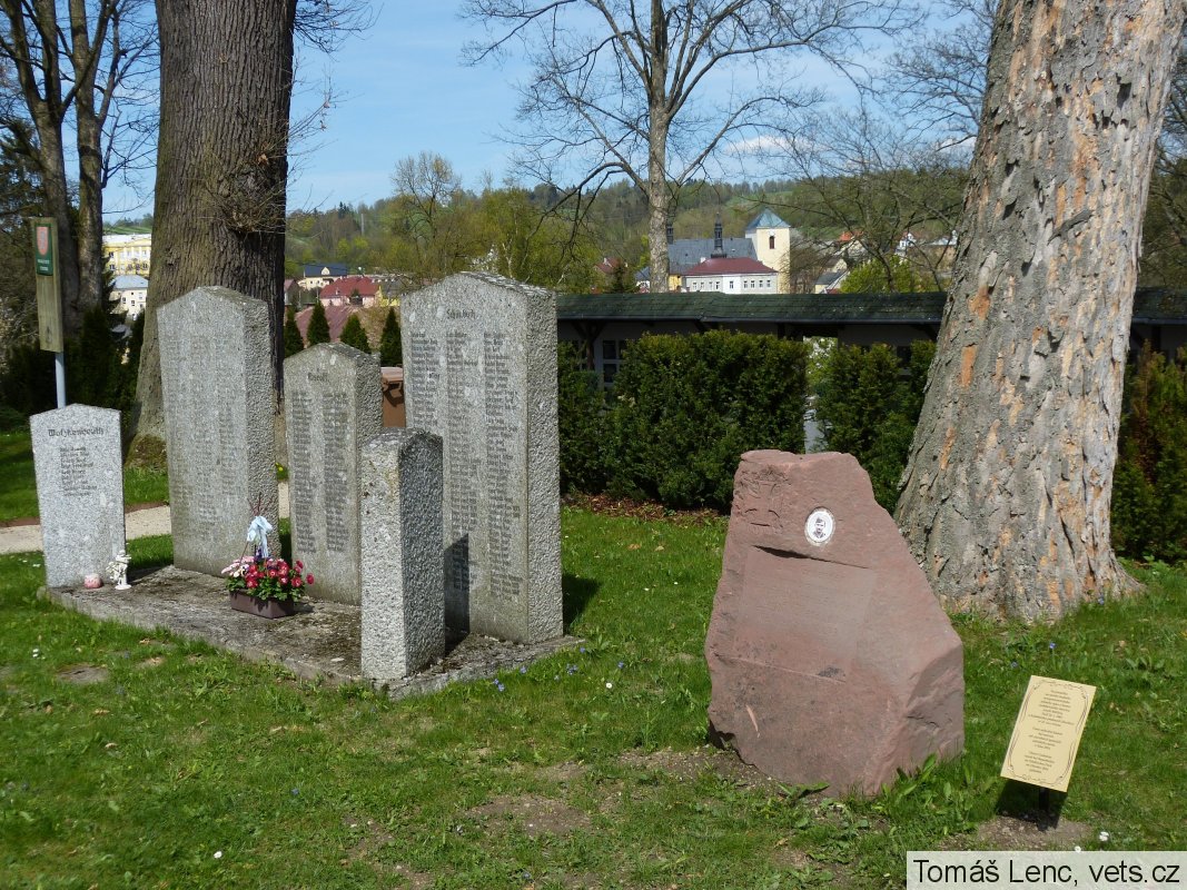 Pomník byl objeven náhodou v roce 2014 při stavebních pracích v městském parku, z iniciativy bývalého starosty Jana Kreuzingera očištěn a za souhlasu vedení města umístěn na hřbitově vedle pomníku padlých z 1. sv. války. Chybějící fotografii vojáka poskytla jeho sestra žijící v severním Německu.