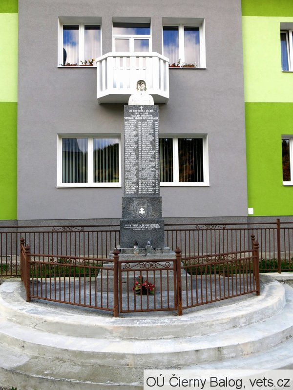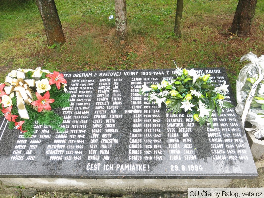 Umístění: Čierny Balog, Závodie 5/5, před zdrav. střediskemNA PAMIATKU OBETIAM 2. SVETOVEJ VOJNY 1939-1944 Z OBCE ČIERNY BALOG
