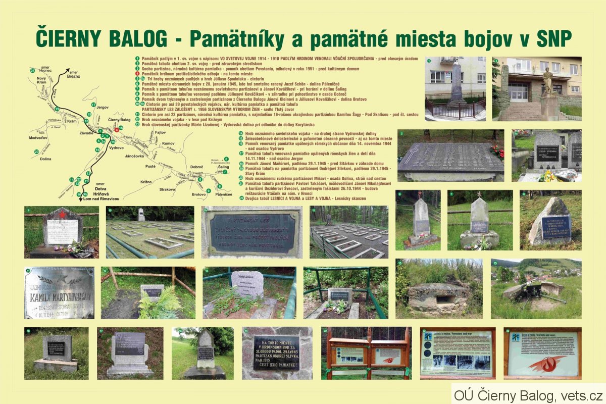 Umístění: Čierny Balog, hřbitov pro asi 23 povstaleckých vojáků - národní kulturní památka, 20 hrobů, v lese na Skalici(nápis na ústředním pomníku)