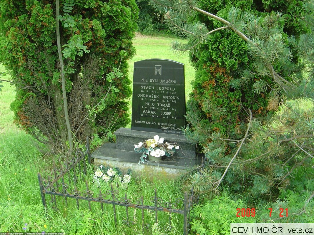 Pomník byl odhalen asi v roce 1950, autorem místní kameník Okál. (zdroj CEVH MO ČR)