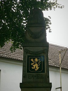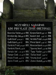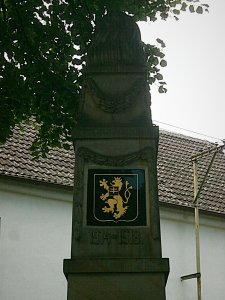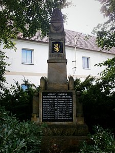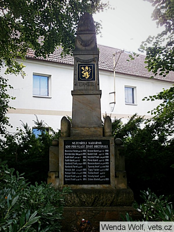 pomník postavila sochařská firma Pilnay a Vostrý v roce 1925.Za německé okupace byla písemná stať opravena a po našem osvobození opět opravena do původního stavu. Za postavení pomníku byl firmě zaplacen obnos 6 246,84Kč - obec přispěla částkou 2 000, základ veškerý materiál pracovní síly dodal sbor, takže přibližný obnos činil 10 000,- Kč. Pomník byl nedávno opraven (investováno cca 100 000,-Kč),