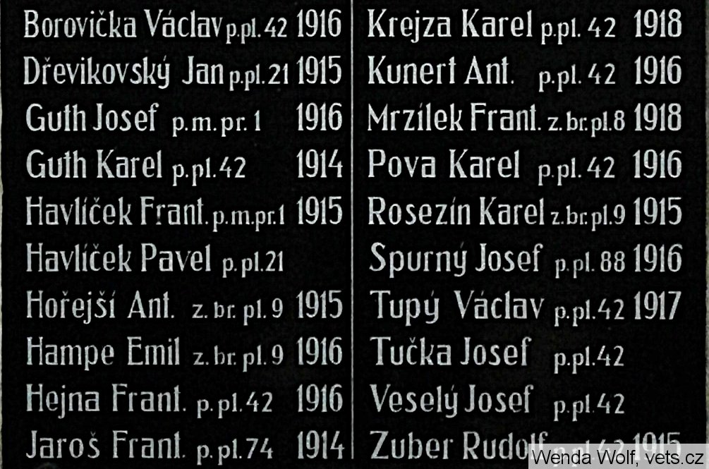 Borovička VÁCLAV p.pl.42 1916 Dřevikovsky Jan p.p1. 21 1915