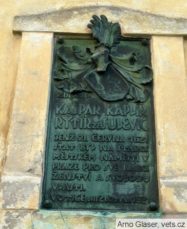 Pamětní deska Kašpar Kaplíř ze Sulevic