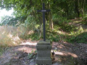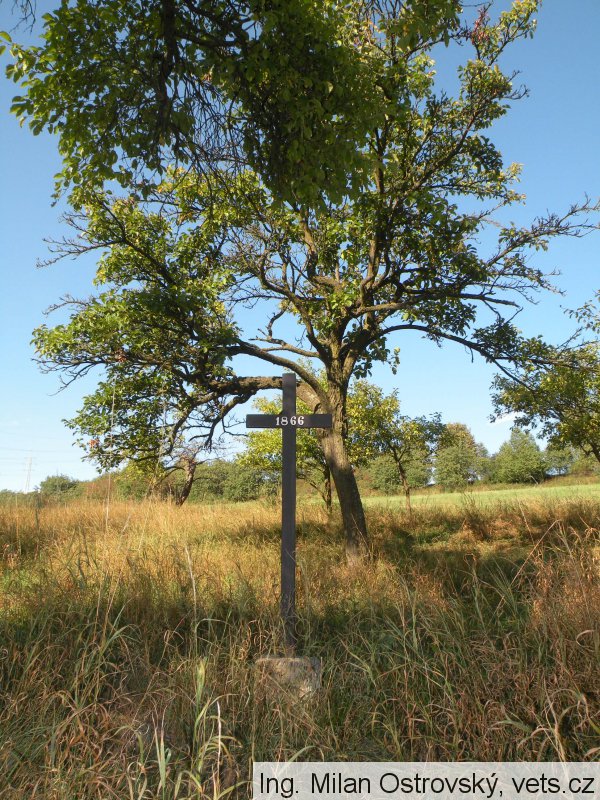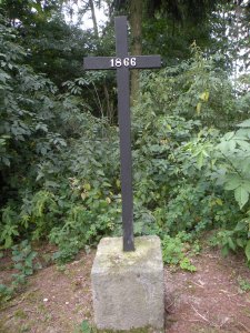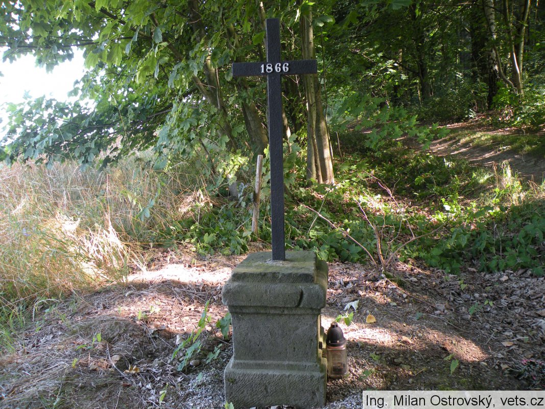 kovový kříž, souřadnice 50°23'19.834"N, 16°8'19.490"E odečteny z internetu (www.mapy.cz)