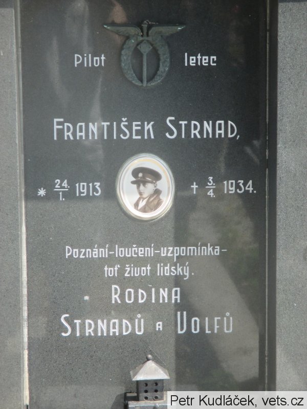Pilot voj. František Strnad a pozorovatel svob. Pavel Punčochář zahynuli 3.4.1934 při letecké nehodě na letecké střelnici Milovice.