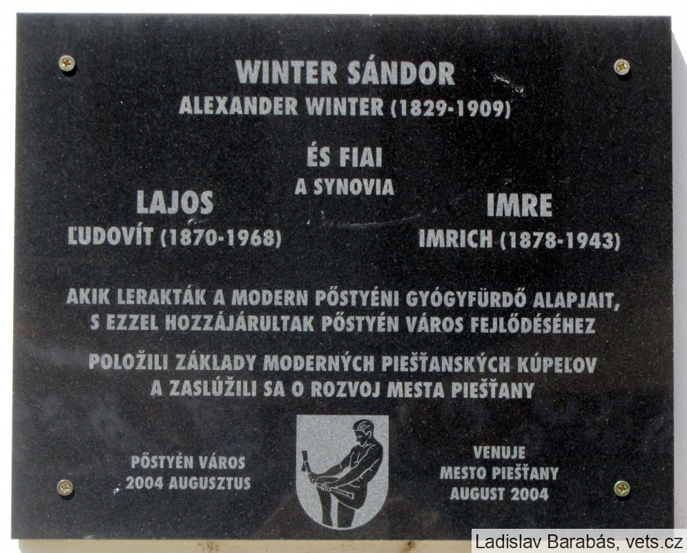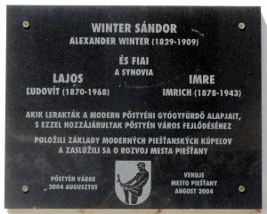 Ľudovít Winter (1.11.1870 Šahy – 15.9.1968 Piešťany) podnikateľ, budovateľ piešťanských kúpeľov. Po vzniku Slovenského štátu Winterovci čelili perzekúciám. Tie vyvrcholili v roku 1944, keď skrývajúceho sa Ľ. Wintera našli a deportovali do zberného tábora v Seredi a odtiaľ do Terezína. V čase oslobodenia mal 75 rokov. Po znárodnení kúpeľov komunistickým režimom žil v ústraní a chudobe, mal dokonca zakázaný vstup na Kúpeľný ostrov.