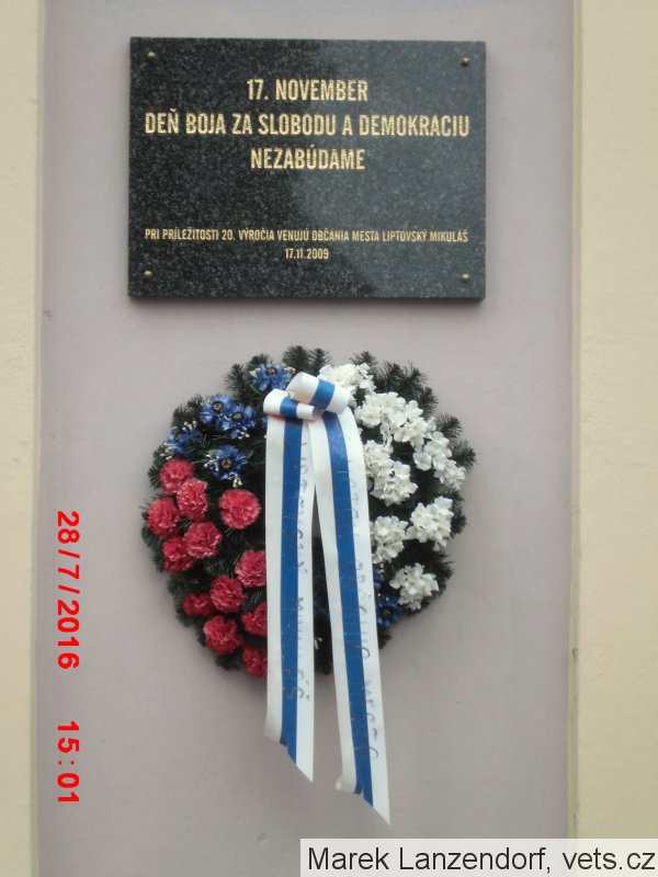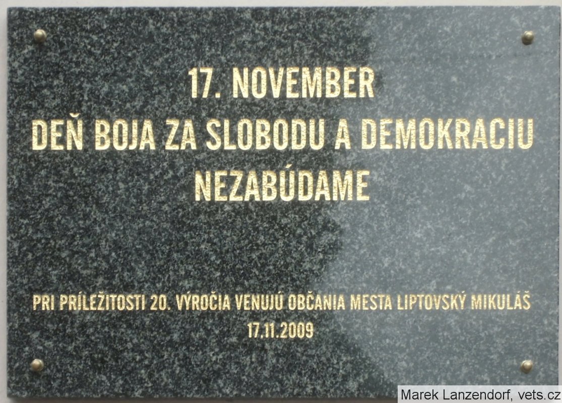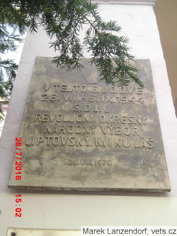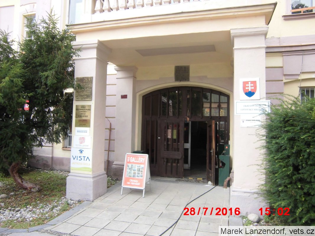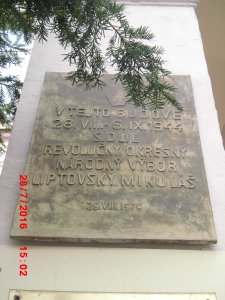Umístění: Liptovský Mikuláš, Námestie Osloboditelov 1, Obvodný úrad Liptovský Mikuláš - u vchodu do budovyNápis: