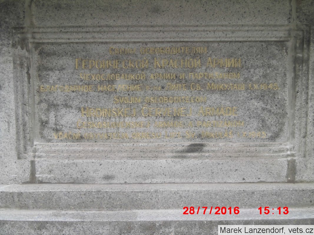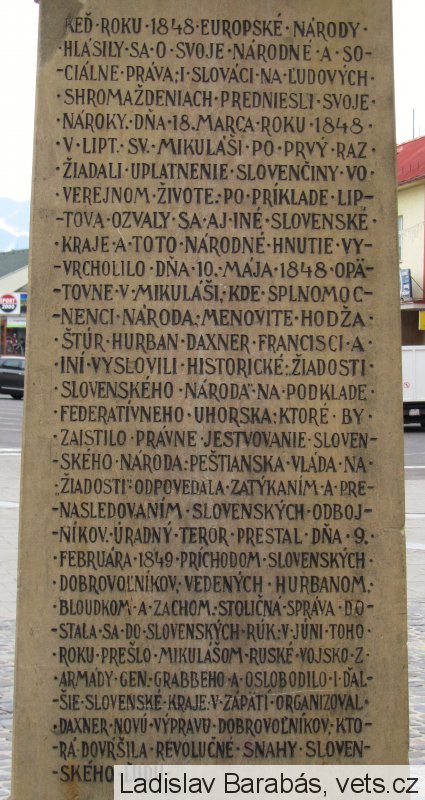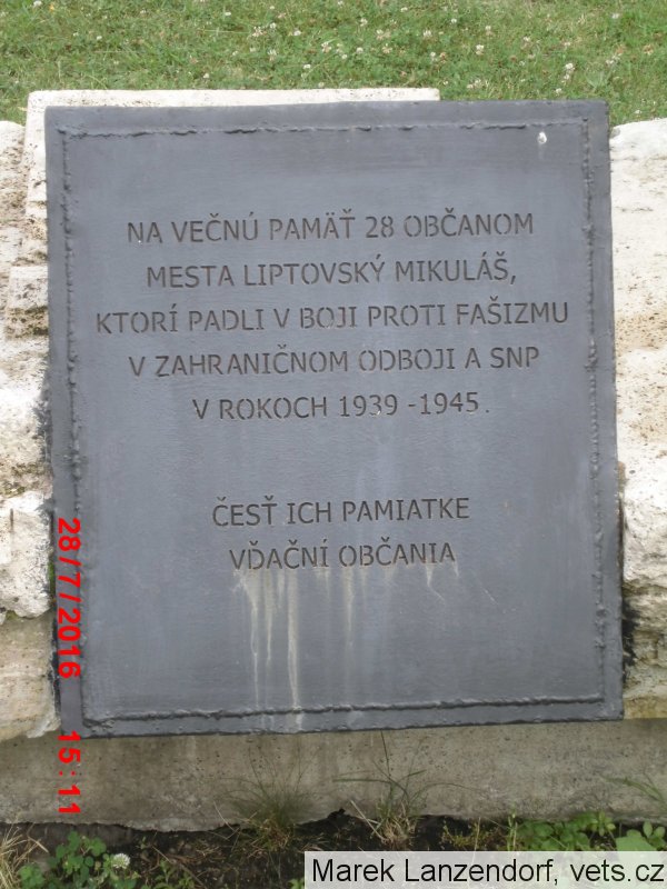 Umístění: Liptovský Mikuláš, Námestie Osloboditeľov, vedľa kostola na námestíNápis: