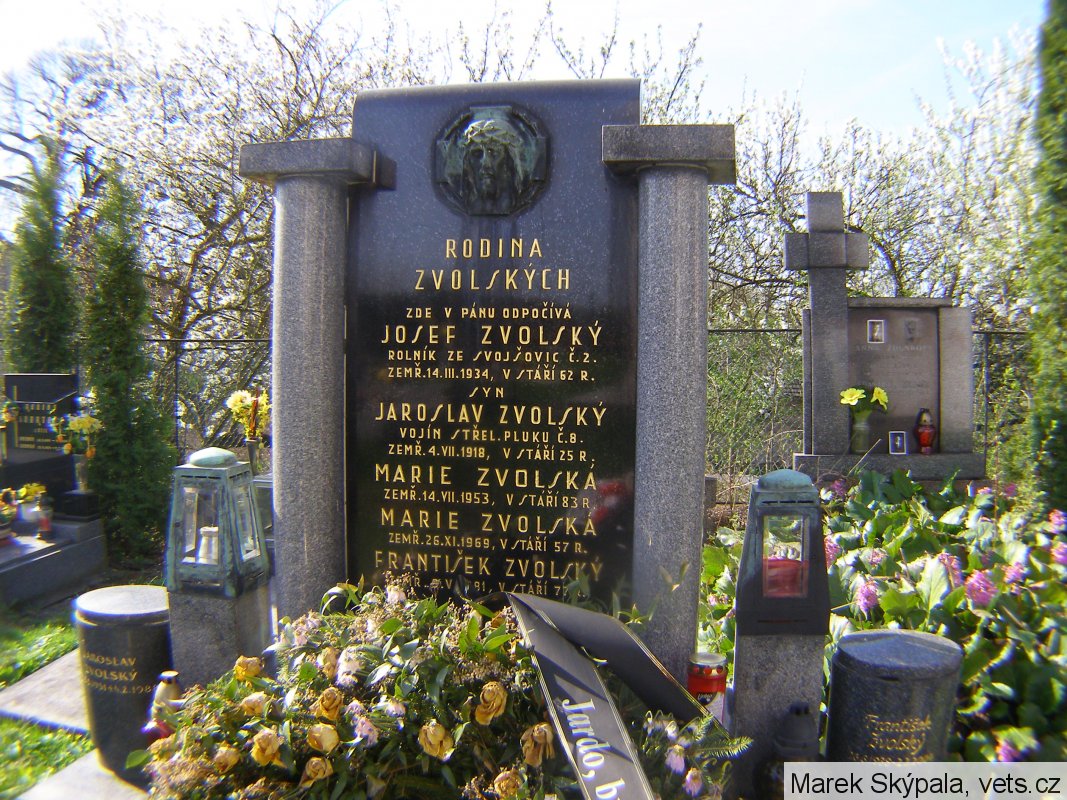 Jaroslav Václav Zvolský se narodil dne 2.2.1884 v Popovičkách. Dne 19.3.1915 byl hlášen jako nezvěstný na ruském bojišti u Sukova v okrese Medzilaborce.