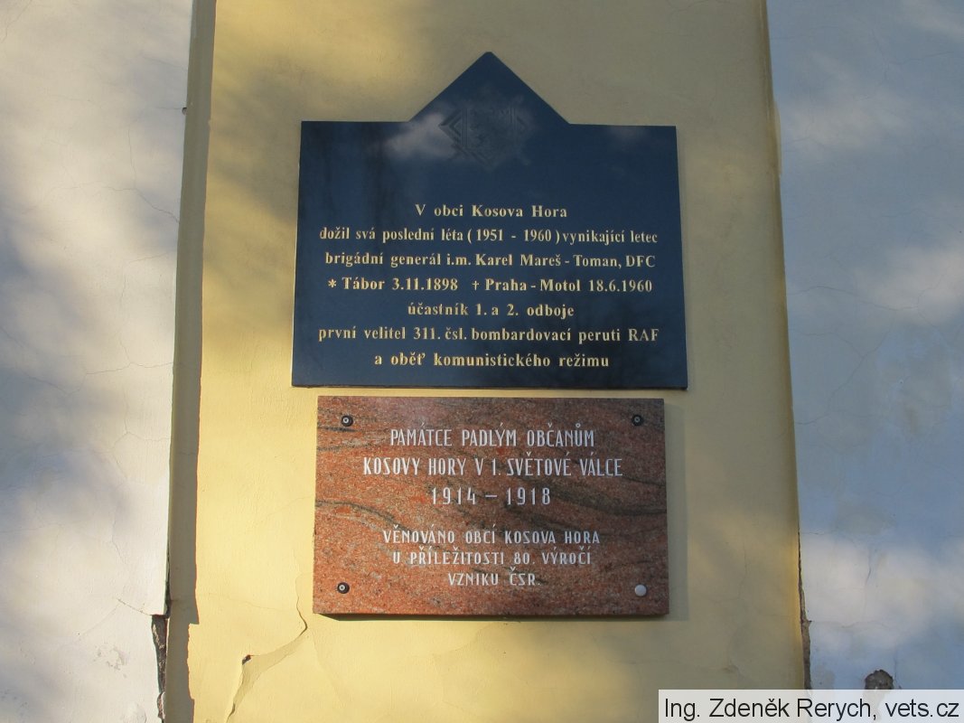 21.4.2018 byl v parku obce Kosova Hora odhalen pomník brigádního generála Karla Mareš-Tomana, prvního velitele 311. čs bombardovací perutě RAF v Anglii.