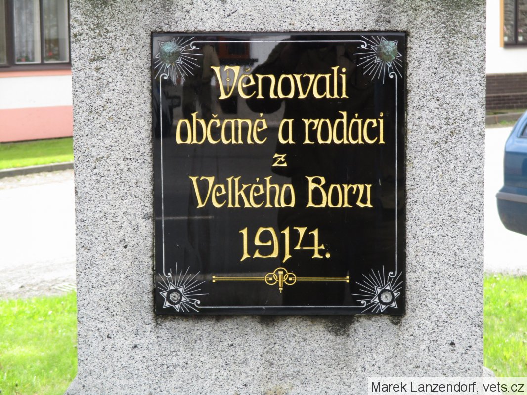 Václav Churaň, narozen 21.8.1878 Velký Bor, nezvěstný v boji 8.9.1914 Halič, příslušník 28. zeměbran. pluku, není uveden na pomníku.