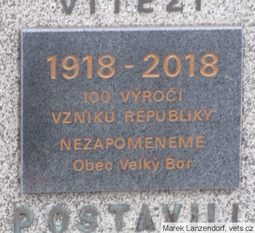 V neděli 28. října 2018 byla ve Velkém Boru v rámci oslav stého výročí založení republiky slavnostně odhalena pamětní deska na stávajícím Pomníku obětem 1.světové války.