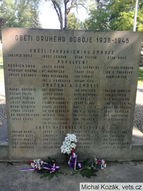 Kulhánek František, nar. 7.11.1902. Zatčen za pomoc parašutistům, vězněn v KT Dachau. Zahynul na pochodu smrti, stopa se ztrácí 10 km za Teplicemi.