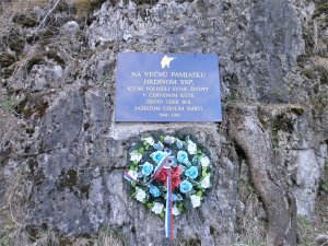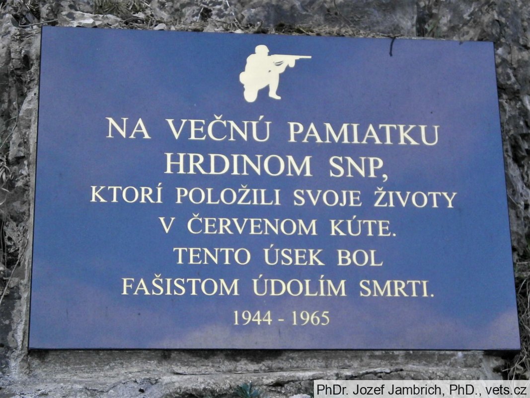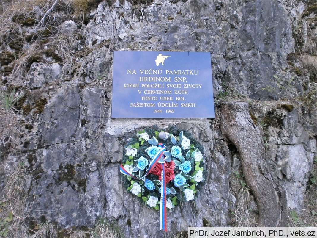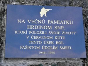 Umístění: Hybe, lokalita Červený kút, na skale nad rázcestím ciest I. triedy č. 18 a 72NA VEČNÚ PAMIATKU