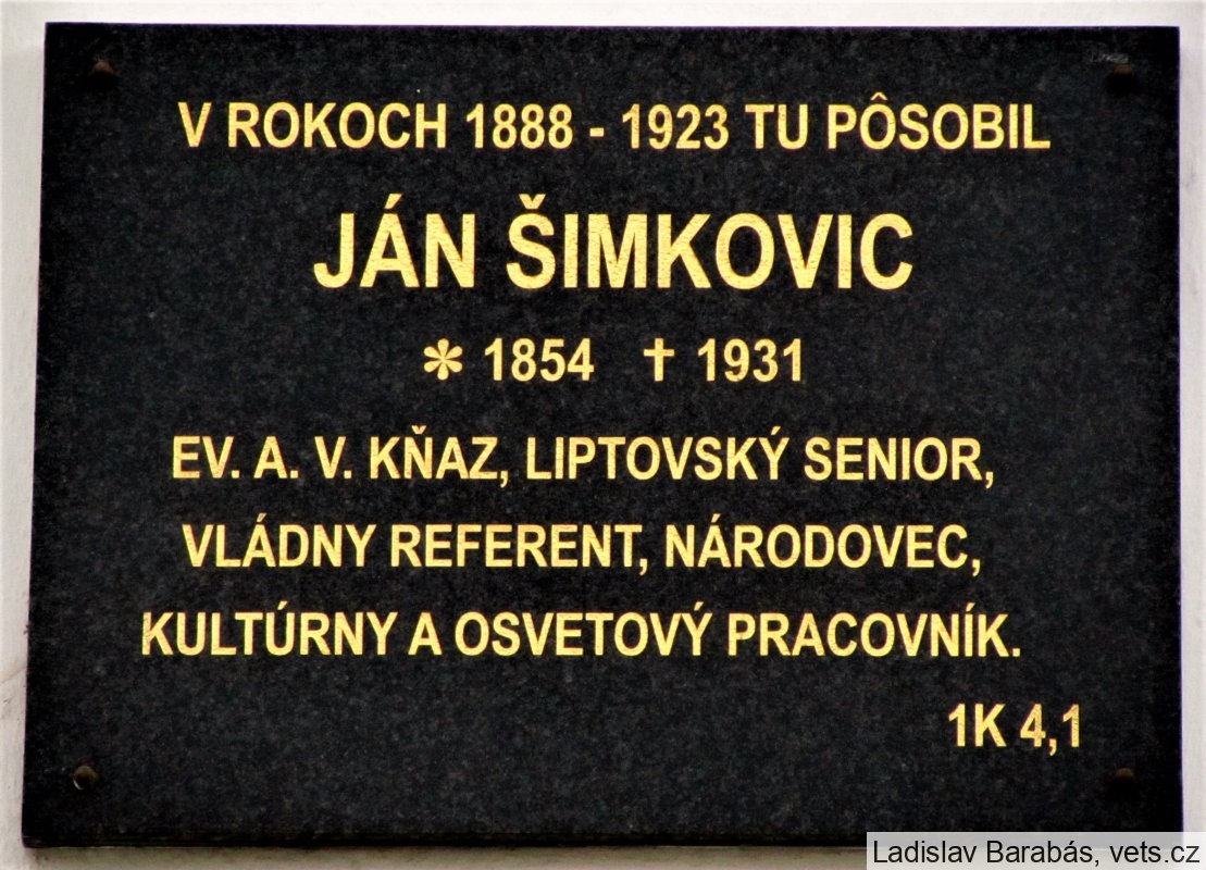 Umístění: Hybe, evanjelická faraV ROKOCH 1888 – 1923 TU PÔSOBIL
