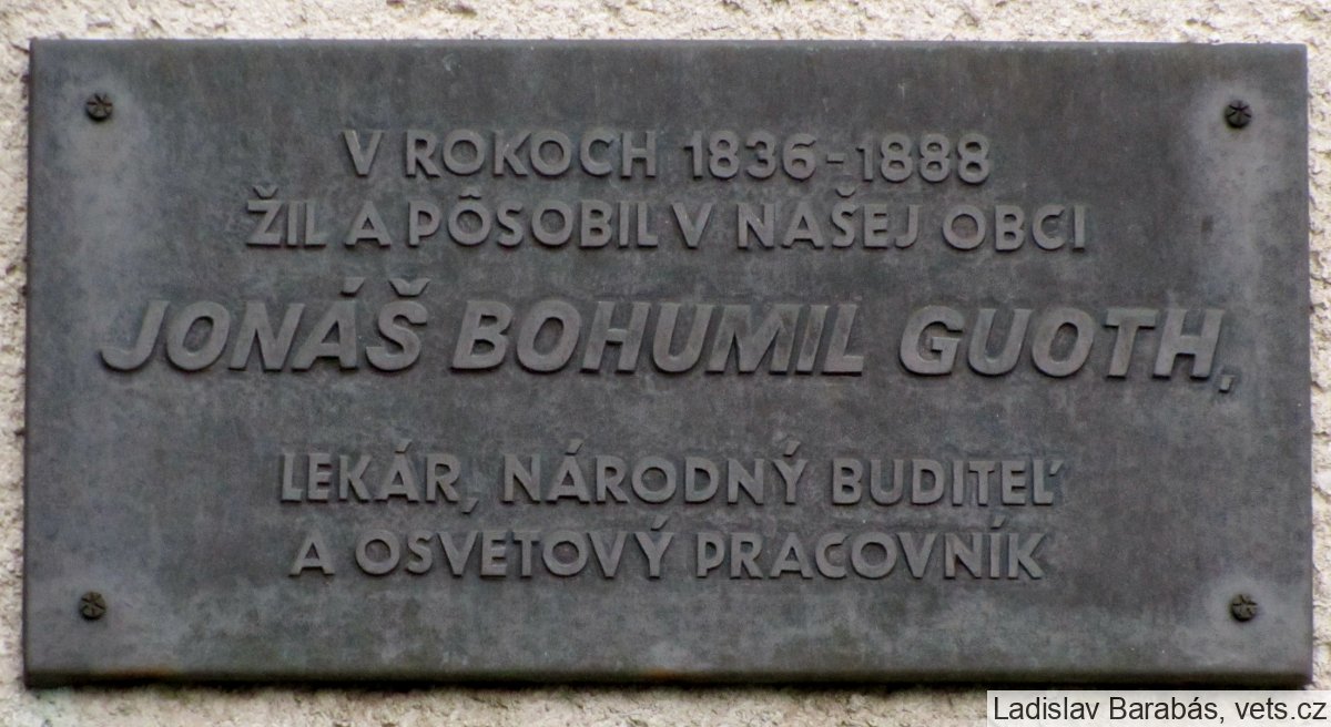 Pamätná tabuľa Jonáš Bohumil Guoth