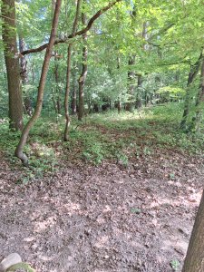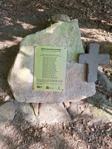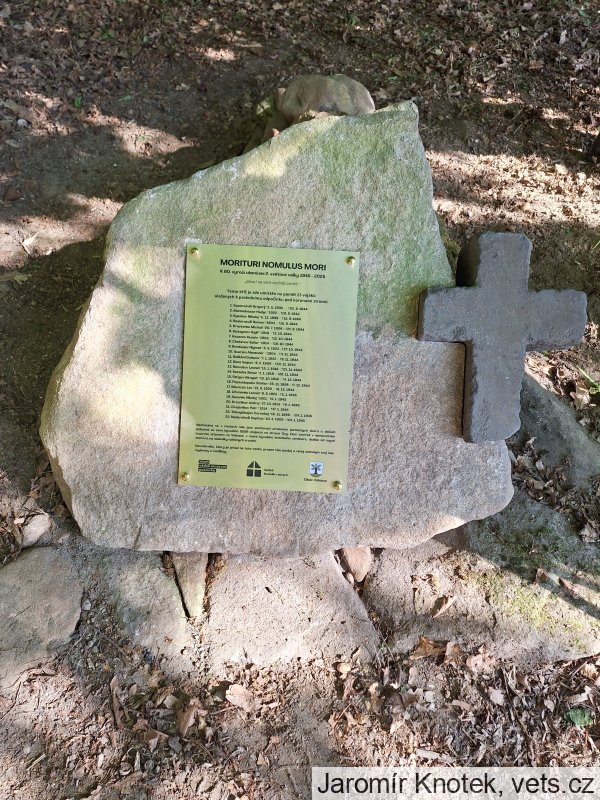 Tento kříž je zde umístěn na paměť 23 vojáků uložených k poslednímu odpočinku pod korunami stromů.
