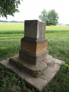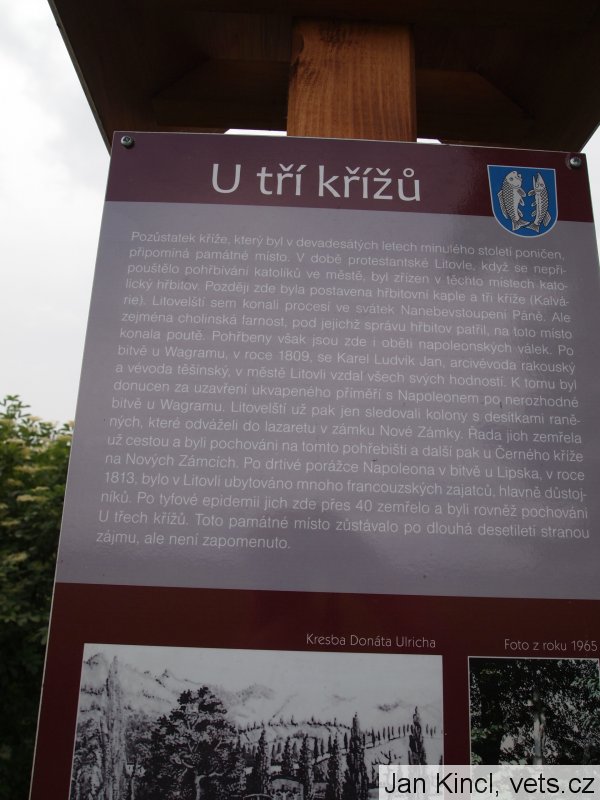 V době protestantské Litovle, když se nepřipouštělo pohřbívání katolíků ve městě, byl zřízen v těchto místech katolický hřbitov. Později zde byla postavena hřbitovní kaple a tři kříže (Kalvárie). Pozůstatek kříže, poničeného v 90 letech minulého století, stojí na místech katolického hřbitova. Pohřbeny jsou zde i oběti napoleonských válek. Po bitvě u Wagramu, v roce 1809, se Karel Ludvík Jan, arcivévoda rakouský a vévoda těšínský, v městě Litovli vzdal všech svých hodností. K tomu byl donucen za uzavření ukvapeného příměří s Napoleonem po nerozhodné bitvě u Wagramu. Litovelští už pak jen sledovali kolony s desítkami raněných, které odváželi do lazaretu v zámku Nové Zámky. Řada jich zemřela už cestou a byli pochováni na tomto pohřebišti a další pak u Černého kříže na Nových Zámcích. Po drtivé porážce Napoleona v bitvě u Lipska, v roce 1813, bylo v Litovli ubytováno mnoho francouzských zajatců, hlavně důstojníků. Po tyfové epidemii jich zde přes 40 zemřelo a byli rovněž pochováni U třech křížů. Toto památné místo zůstávalo po dlouhá desetiletí stranou zájmu, ale není zapomenuto.