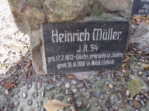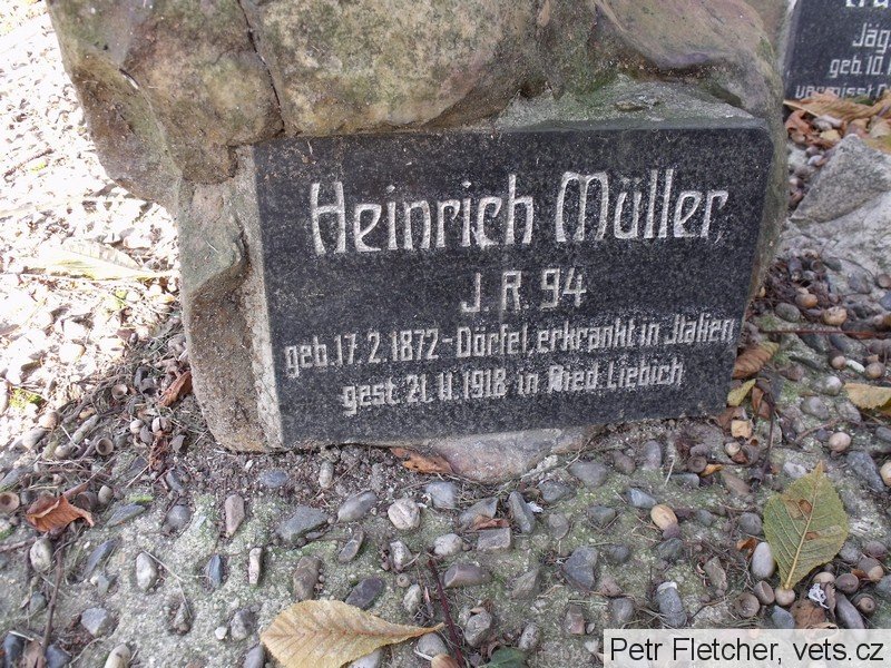 Müller Heinrich Wenzel: *17.2.1872 Dörfel, č. p.196, okr. Reichenberg (Vesec, dnes část Liberce). Bydlištěm Niederliebich (Dolní Libchava). Nádeník. Ženatý (5.2.1900) s Emílií, roz. August. Příslušník IR. Nr. 94, hodnost neuvedena. Po onemocnění následkem válečné služby v Itálii byl hospitalizován v nemocnici v Liberci, po té převezen domů a zde 21.11.1918 zemřel. Pohřben 23.11.1918, místo nelokalizováno.