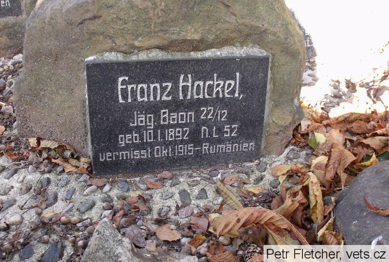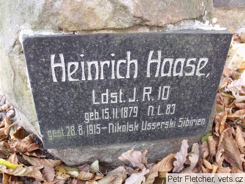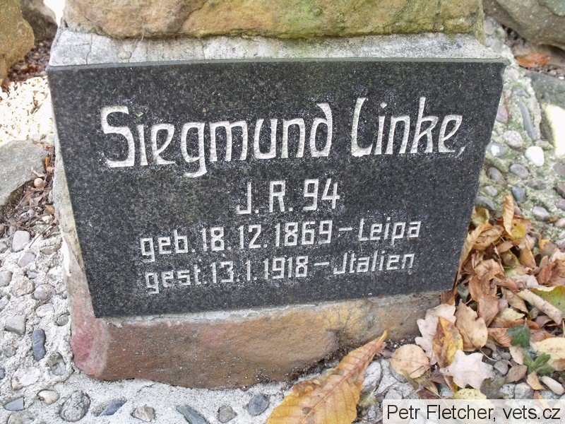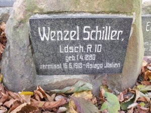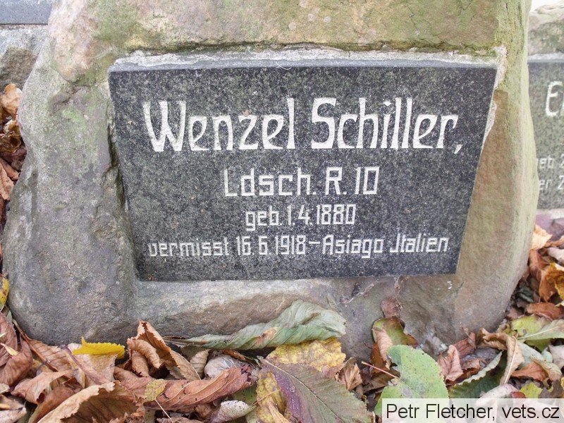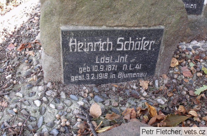 Schäfer Heinrich: *10.9.1871 Niederliebich, č. p. 41, okr. Böhmisch Leipa (Dolní Libchava, okr. Česká Lípa). Tesař. Ženatý (3.6.1899) s Marií, roz. Baborovou. LdstInft., útvar neuveden. +3.2.1918 k. k. Erzherzogin Blanca Spital Günselsdorf – Blumenau (dnes Blumenau – Neurßihof), okr. Baden, Niederösterreich, Rakousko, plicní edém. Převezen a zde 17.2.1918 pohřben. Místo nelokalizováno.