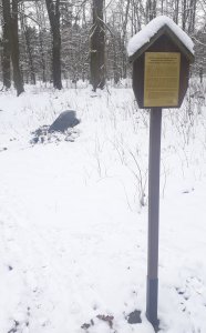 vedle pomníku dvě desky z černého kamene s vysvětlujícími nápisy o účelu pomníku: