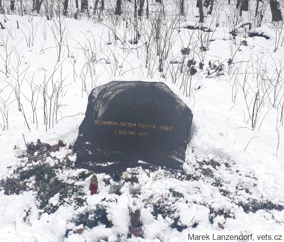 Umístění: Dolní Libchava, za obcí Dolní Libchava směrem na západ po silnici č. 262, cca 500m před železničním přejezdem, u neznámého pomníku a odbočky na Horní Dvůr - je nutné odbočit doleva pěšky na polní cestu, jít směrem jihozápad cca 700m do lesa, potom lesní cesta pokračuje na východ cca 500m, na rozcestí úplně doprava na jih cca 200mNEZNÁMÝM OBĚTEM POCHODU SMRTI