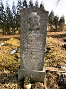 Umístění: Ostrá Lúka, cintorín na východnom okraji obce, evanjelická časť, vľavo od vchodu a vpravo od stredového chodníka na konci cintorínaNápis: