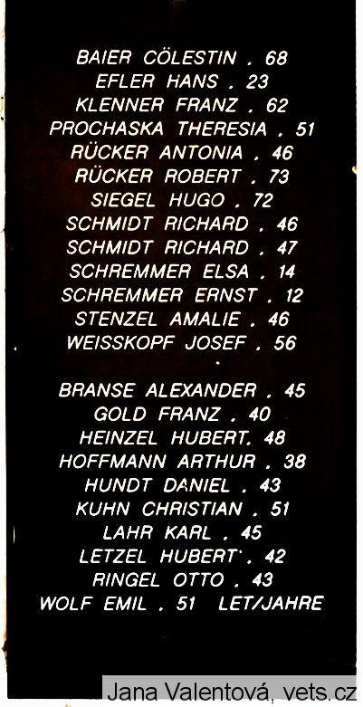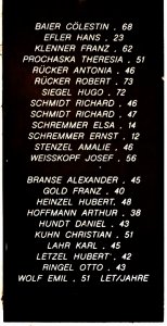 Seznam obětí druhé světové války tak jak je i uveden v knize Merkelsdorf und Liebenau vydané před mnoha roky:.