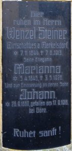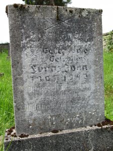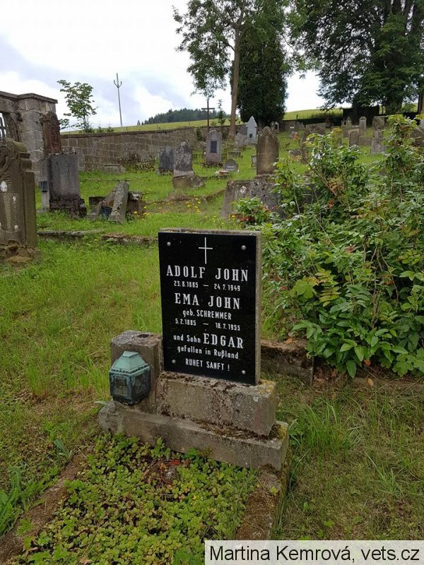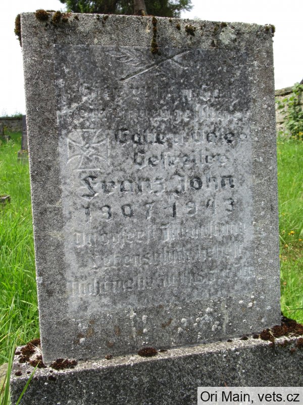 Gefreiter JOHN. Franz, 09.06.1907, 20.01.1943 Johannisbad, gestorben, Res.Laz., beerdigt in Merkelsdorf, Grab derzeit noch an folgendem Ort: Zdonov - Tschechische Republik