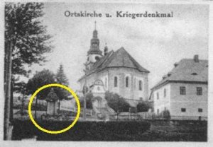 pomník částečně odstraněn / zdemolován novodosídlenci po roce 1945