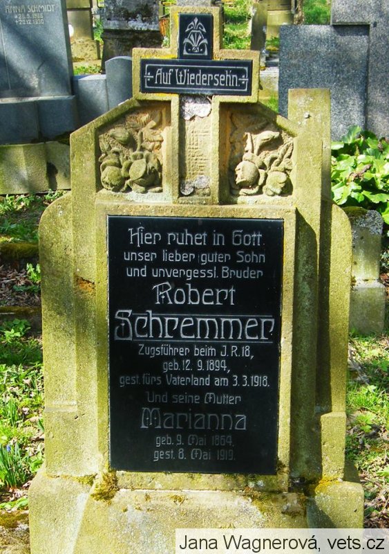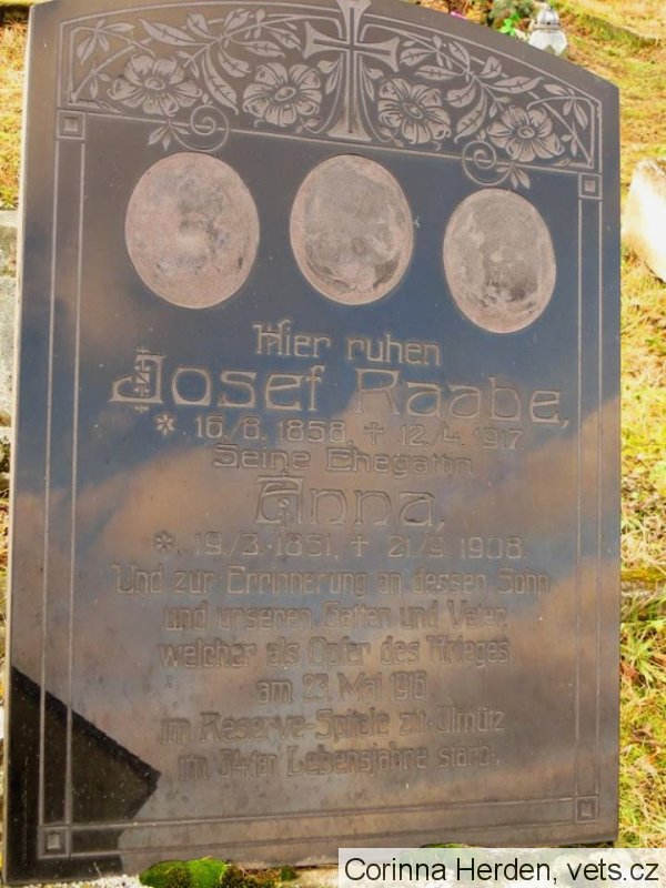 Raabe Robert, voj. pěš. pl. č. 18, *1882, Merkelsdorf, Broumov, Čechy.