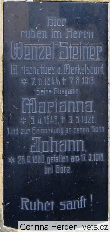 Johann Steiner: Schütze, Sch.R. Nr. 7. Dle databáze padl již 17.9.1917 u Görz s poznámkou: '' zůstal ležeti mezi zákopy.”, místo pohřbu Kaščarje.