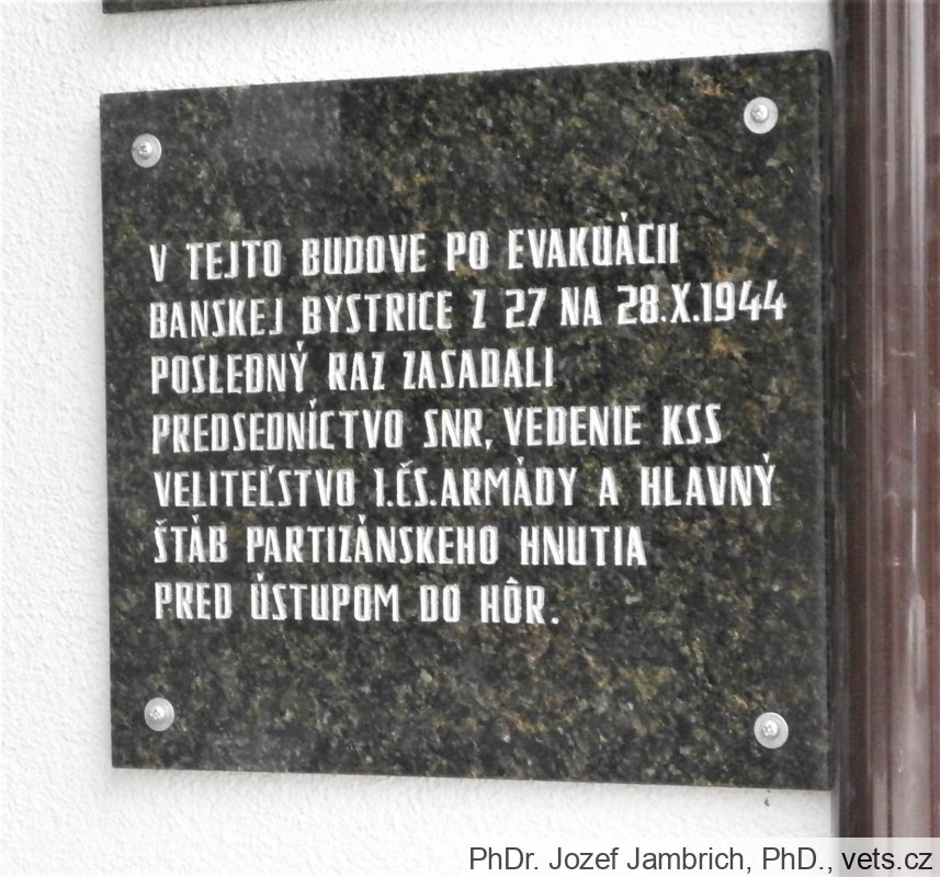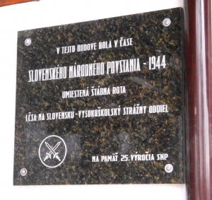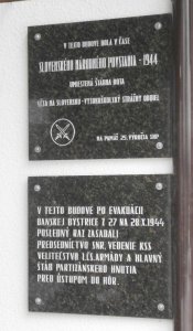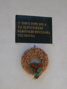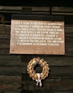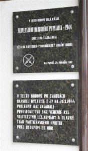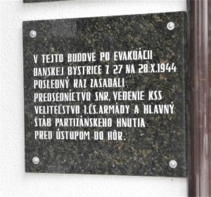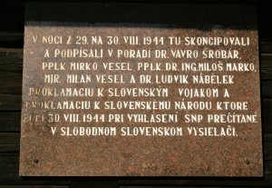 Umístění: Donovaly, západný okraj obce, na dome č. 76 pod cestou E 77V NOCI Z 29. NA 30. VIII. 1944 TU SKONCIPOVALI