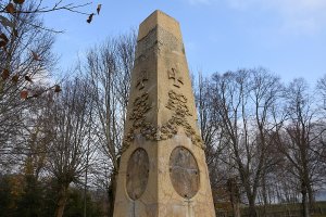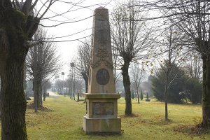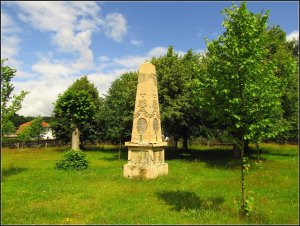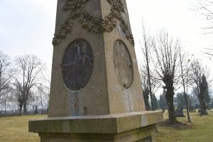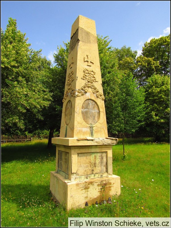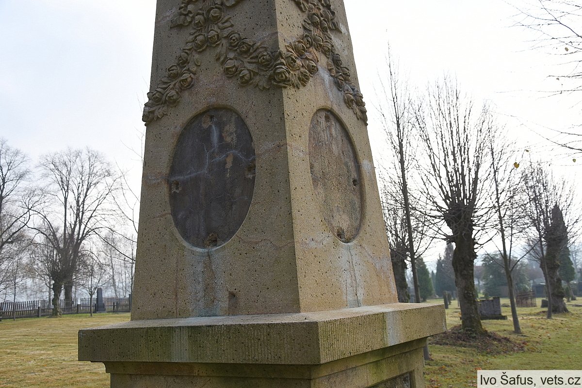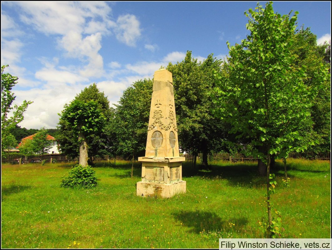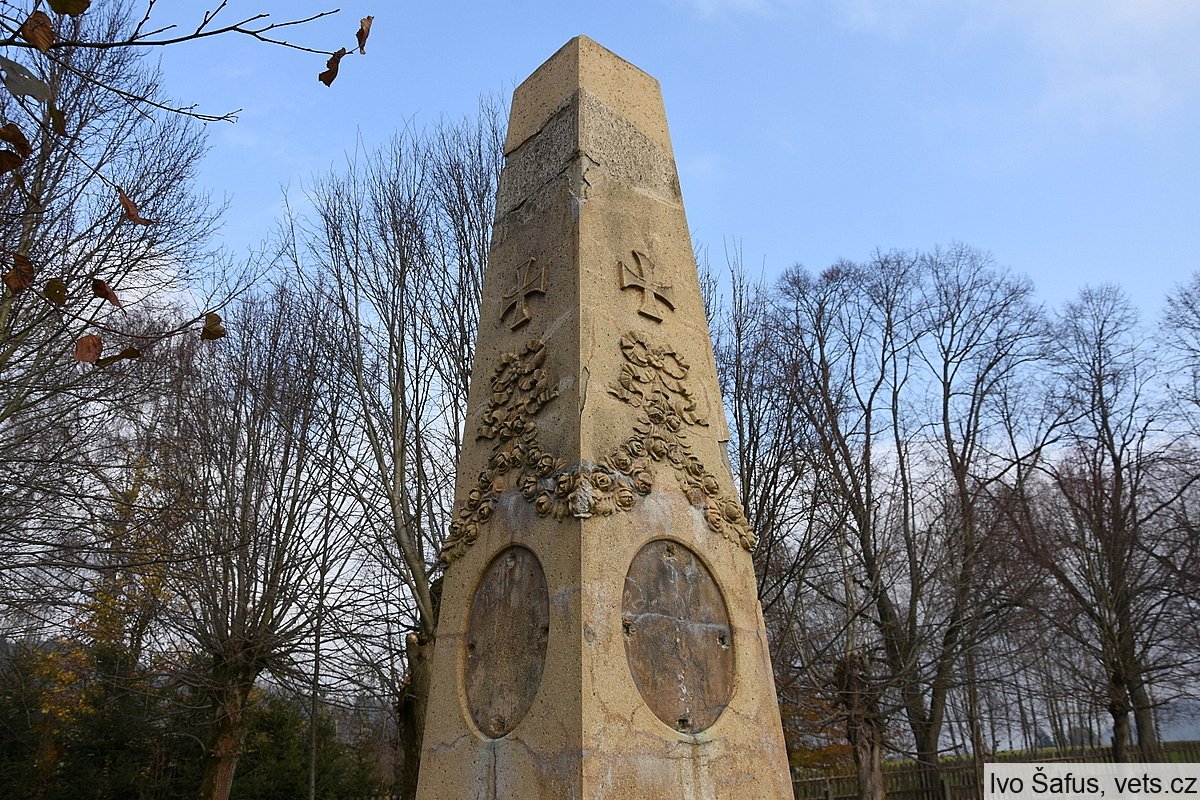 Původní dřevěný pomník na počest padlých na hřbitově který byl odhalen na den Dušičkový roku 1914 byl v létě roku 1916 nahrazen na popud továrníka Franze Josefa Müllera zděným obeliskem.