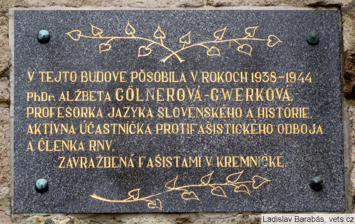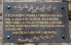 Pamätná tabuľa A. Gölnerová-Gwerková
