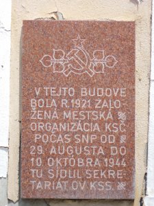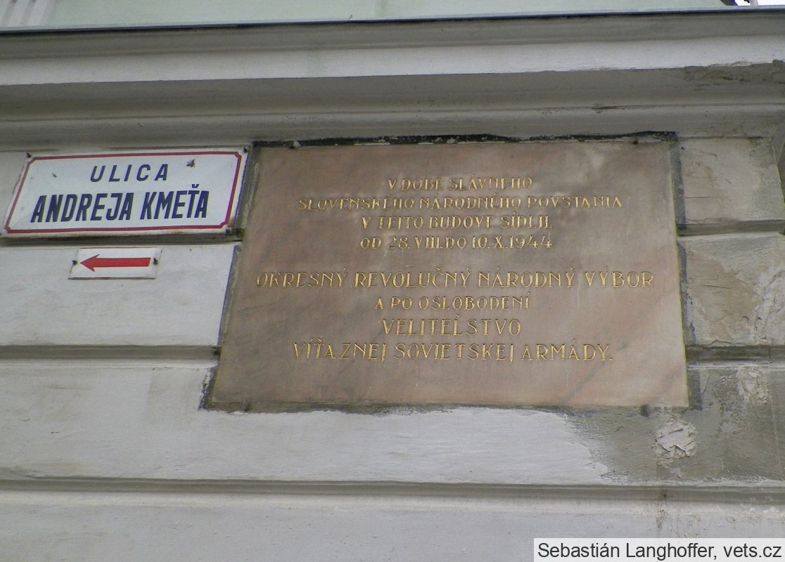 Pamätná tabuľa sídla revolučného výboru a veliteľstva Sovietskej armády